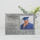 Anúncio formal de formatura em pedra de cinza gravada elegante com uma foto da sua universidade ou formando segundo grau. DICA DA FOTO: Escolha uma foto com o assunto no meio e/ou pré-recorte-a para uma forma quadrada ANTES de carregar. Use a ferramenta CROP para ajustar a imagem dentro da área de modelo. ASSISTÊNCIA: para obter ajuda com a modificação ou personalização do design, transferir o design para outro produto ou, se você quiser coordenar itens, entre em contato com o designer ANTES DE ENCOMENDAR através da guia MENSAGEM de Bate-papo Zazzle ou envie um email para makeitaboutyoustore@gmail.com.