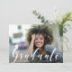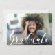 Sobreposição de texto de graduado simples na sua foto favorita na frente e a mesma ou uma foto diferente no verso com os detalhes do anúncio de formatura no verso. MAIS designs em nossa loja para convites e estilo de cartão postal.