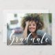 Sobreposição de texto simples do formando na sua foto favorita na frente e a mesma foto ou outra no verso com os detalhes do anúncio de graduação no verso. Mais designs na nossa loja para convites e estilo de cartão postal.