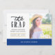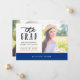 Cartão de anúncio de graduação de foto azul e dourado personalizável para suas especificações. É recomendado um formato quadrado para a foto frontal e o cenário para o contrário.