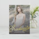 O anúncio de graduação de fotos de cheio elegante apresenta uma sobreposição de texto de folha de papel dourada falsa, mostrando uma foto principal. Clique no botão personalizar para obter mais flexibilidade na modificação de texto e fotos! Variações deste design, cores adicionais, além de coordenar produtos estão disponíveis em nosso compro, zazzle.com/doodlelulu*. Entre em contato conosco se precisar deste design aplicado a um produto específico para criar seu próprio item de correspondência exclusivo! Muito obrigado por ver um DoodleLulu em 2 insetos de junho!