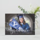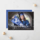Este lindo e elegante anúncio de festa de formatura mostra uma foto da faculdade ou do formando segundo grau na frente do cartão, com uma fonte bonito de escrita de caligrafia, que sobrepõe sua foto do formando. Você pode ajustar o texto na parte traseira do cartão para fazer com que isso seja um simples anúncio de graduação ou um convite de festas de formando. Um na moda, classe e design de graduação simples! Projetado para você pelo Blackberry Boulevard.