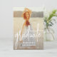 O cartão de anúncio de formatura do script moderno foi personalizado com 2 fotos, uma na frente e outra no verso. Adicione o seu toque pessoal às costas escrevendo os detalhes do seu anúncio sobre os anos de segundo grau e/ou os seus planos para o futuro.