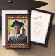 Este é um Anúncio de Graduação listrado laranja que mostrará seu formando. A frente terá uma foto do formando enquanto a parte traseira tem as palavras do anúncio. O texto principal é editável: Ano de Aulas de Nome O texto de volta também é editável: Ele fez! Informações sobre graduação.