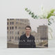 Simples design de cartão de anúncio de graduação focando nos detalhes essenciais de seu evento, assim como em 3 fotos. Detalhes adicionais sobre sua graduação podem ser gravados na parte traseira do cartão. Foto de alexander samen no Unsplash.