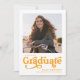 Anúncio de formatura minimalista e simples começa com sua foto. O graduado e o restante do texto são escritos em uma tipografia laranja terracota ousada e na moda. Um padrão gráfico ousado dos anos 70 em rosa brilhante, laranja, azul empoeirado e verde oliva decora o verso. Este anúncio de formatura fornece a turma de 2023, seu nome e escola.