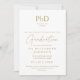Este anúncio de formatura de doutorado dourado elegante pode ser personalizado com os detalhes da sua formatura e uma foto no verso. Criado por Thisisnotme©