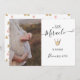 Sua foto foi fotografada neste doce e milagroso anúncio de gravidez para uma menina. Carregue sua foto! Adicione sua data de vencimento de chegada. Modelos são fornecidos para você. Coroa bonita no meio do anúncio. Incrível fundo de corações flutuantes cor-de-rosa e castanho nas costas.