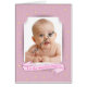 Um quadro de estrela cor-de-rosa com cantos cortados para inserir a fotografia da sua marca de nova menina para um anúncio de nascimento.