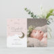 O anúncio de nascimento de uma garota bonita apresenta um fundo cor-de-rosa pincelado com estrelas falsas de ouro, lua crescente e nuvens brancas. O verso apresenta padrões de pontos aleatórios dourados falsos em fundo branco. Personalize para suas necessidades. Você pode encontrar mais produtos correspondentes na minha loja.