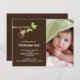 O nosso pequeno macaco chegou é um jeito doce de anunciar à sua família e amigos que o seu pequeno querido chegou. O cartão de anúncio de foto apresenta o mais fofo pequeno macaco pendurado em um galho de árvore em um fundo marrom com um detalhe de bolinhas. Adicione sua foto e informações e está tudo pronto! ©cocoa studio
