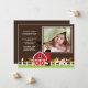 Nosso anúncio de nascimento de bebê com foto e animais da fazenda é uma maneira doce de contar aos familiares e amigos que seu pequeno querido chegou. O cartão de anúncio de foto apresenta a cena mais fofa de fazenda em um fundo marrom. Adicione sua foto e informações e está tudo pronto! ©cocoa studio