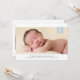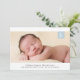 Este doce anúncio de nascimento apresenta um monograma clássico e design tradicional. A frente do cartão de nascimento inclui uma grande foto de bebê. Um monograma branco, dentro de caixa azul, cobre a foto. Você pode personalizar a cor da caixa e do monograma; você também pode movê-los para o ajustado com sua própria foto. O nome do cheio do seu bebê, a data de nascimento e as estatísticas de natalidade também estão na frente do cartão. A parte de trás do anúncio de nascimento inclui uma segunda foto e uma área onde você pode escrever uma mensagem personalizada mais longa para os destinatários.