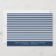 Um cartão de salvar a data moderno e elegante com escrita caligráfica caprichosa e listras azuis-marinho e brancas. Um cartão de agradecimento correspondente está disponível.