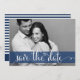 Anúncio de Foto de Salvar a Data em Listras Azuis-