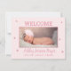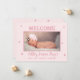 Bem-vindos ao seu recém-nascido para a família, e apresentar aos amigos com este cartão com fotos. O cartão é cor-de-rosa com estrelas cor-de-rosa e tem a palavra bem-vindo. O cartão com fotos inclui o nome, o peso e as polegadas do bebê. É uma forma doce de enviar anúncios de nascimento e uma foto ao mesmo tempo.