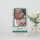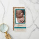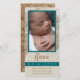 Frente: Foto de bebê grande, aparada na cor de sua escolha com nome, data e informações de nascimento. Tema da aventura mundial Back: foto do anúncio do bebê com quadro de bússola sobre um mapa de safra. Oh, os lugares que você vai.
