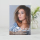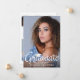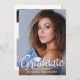 Anuncie o seu segundo grau ou formando universitário com este anúncio moderno com 5 fotos (1 na frente e 4 na parte traseira) com o FORMANDO de tipografia de script manuscrito em chic, com destaque branco, com um boné de formatura branco ou uma placa mortal. O verso foi projetado para incluir informações sobre as realizações, atividades e planos futuros de seus formandos, conforme desejado. DICA DA FOTO: Pré-recorte/dimensione as fotos em uma forma semelhante, conforme mostrado, ou coloque o assunto no meio ANTES de carregar e usar a ferramenta CROP para ajustar a imagem dentro da área do modelo. ASSISTÊNCIA: para obter ajuda com a modificação ou personalização do design, alteração de cor, transferência do design para outro produto ou você gostaria de coordenar itens, entre em contato com o designer ANTES DE ENCOMENDAR através da guia MENSAGEM de bate-papo Zazzle ou envie um email para makeitaboutyoustore@gmail.com.