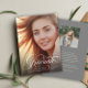 A tipografia do guião gráfico com flores envolve seu nome, escola e classe de ano neste anúncio do formando fotográfico moderno. Esta é a versão de cinza/marfim atrás.