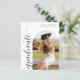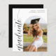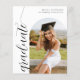 Um anúncio de graduação minimalista feito com uma foto personalizada em forma de arco e uma escrita elegante clássica com letra de "formando".