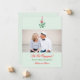Este anúncio do noivado moderno é ideal para um casal que se engajou nas férias. Ele apresenta um erro no topo e uma imagem do casal feliz com uma borda de escala. Adicione seus nomes. Design festivo e elegante.