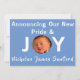 O anúncio de nascimento com o tema "Orgulho e Alegria", e a fotografia do seu precioso incorporado à palavra "Alegria". O reverso inclui todas as informações sobre o nascimento do bebê, assim como os nomes da família orgulhosa! Mensagem do MineBydesign e podemos ajudar a personalizar qualquer design que você visualizar.