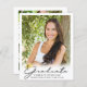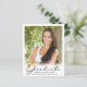 Anuncie seu segundo grau ou formando universitário com este anúncio de alternativo de baixo custo impresso em papel leve de 4,5x5,6 polegadas em vez de estoque de cartão e com 5 fotos (1 na frente e 4 na parte traseira) e um FORMANDO de título de tipografia de script moderno e elegante, escrito à mão, em preto, com um boné de formatura de folha metálica falsa ou sotaque de papel. O verso foi projetado para incluir informações sobre as realizações, atividades e planos futuros de seu formando, conforme desejado. Ideal para orçamentos conservadores e/ou entrega manual. ASSISTÊNCIA: para obter ajuda com a modificação ou personalização do design, a alteração de cor ou a transferência do design para outro produto, entre em contato com o designer ANTES DE ENCOMENDAR através da guia MENSAGEM de Bate-papo Zazzle ou envie um email para makeitaboutyoustore@gmail.com.