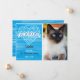 O bonito cartão de anúncio fotográfico é perfeito para anunciar a chegada ou adoção do seu mais novo membro da família peluche! O anúncio tem uma bonito cor azul-d-água clara pintada de fundo no lado esquerdo. Há um coração feito de um padrão de silhuetas de gatinho azul claro. Em todo o coração de gatinho está uma faixa branca com a palavra INTRODUCING em letra azul. Abaixo do coração e faixa está um lugar para personalizar com o nome do seu novo animal de estimação, o nome da família e a data de adoção ou nascimento. À direita da aquarela e do coração está um lugar para adicionar uma foto do seu novo amigo gatinho. O verso do anúncio está completamente coberto pela cor azul clara da água. Este anúncio bonito é uma maneira divertida de deixar seus amigos e família saberem e conhecerem seu novo animal de estimação da família.