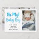 Cartão de modelo de anúncio simples e moderno de bebê com roteiro apresentando 2 fotos de seu filho (frente e trás)! Personalize este produto adicionando o estado de nascimento do seu filho na parte inferior!