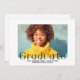 Anúncio legante de graduação de fotos em uma simples borda branca com a inscrição de serifa de rico para o "Formando" e texto personalizado para um nome, classe e escola.