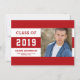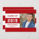 Caracteres tradicionais de varsidade em fundo listrado com foto de solteiro. O fundo pode ser alterado para corresponder às cores da escola. Fácil e barato de fazer você mesmo. Adicione suas próprias fotos e texto personalizado ou escolha "Personalizar" para alterar o layout, o tamanho, o estilo ou as opções de fotos. O backer de faixas opcional pode ser alterado se você quiser adicionar mais fotos, obrigado ou informações de festa de formatura.