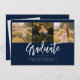 Marinho de Lançamento de Script de Colagem de Fotos Graduação 4 - Cartão de Lançamento de Script Azul. Personalize facilmente isso alterando o texto e substituindo as fotos pelo seu. Uma maneira moderna e moderna de anunciar sua graduação este ano!