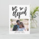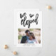 Uma maneira elegante de informar seus amigos sobre sua fuga para casar e convidá-los a se juntarem a você para uma celebração pós-casamento também! Conjunto elegante com a inscrição 'Nós Fugimos para Casar' na frente em preto, abaixo da qual você pode adicionar sua foto favorita do casamento, e personalizar seus nomes, data e local da cerimônia. No verso, personalize facilmente com os detalhes do seu anúncio e convite.
