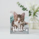 Olá... sou Kitten, o mais novo membro da família! Apresente o seu gatinho novo com este simples cartão de anúncio para cães, gatos, cachorros e gatinhos novos. Esses novos cartões postais de lançamento de animais de estimação orçamentários precisam ser enviados como cartões postais de tamanho excessivo, de modo que possam incorrer em despesas de postagem padrão, mas eles não precisam de um envelope ou etiqueta de endereço de retorno. Adicione a sua foto favorita dos gatos e personalize com o nome e o nome da família dos gatinhos! Digite sua mensagem pessoal para a família e os amigos na parte traseira ou exclua para escrever manualmente. Seja um novo filhote, gatinho ou um gato ou cão de salvamento adotado, este novo design de anúncio de animais de estimação é perfeito para enviar a família e amigos para receber um novo animal de estimação familiar. COPYRIGHT © 2020 Judy Burrows, Black Dog Art - Todos Os Direitos Reservados. Anúncio de Gato do Kitten Foto de Pet