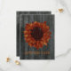 Anúncios de Save The Date de Casamento com fundo de madeira de celeiro na frente e atrás. A frente apresenta um girassol que parece ter sido pintado na madeira do celeiro. Personalize o texto na frente e atrás. Procure por convites correspondentes na Jill's Paperie.