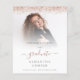 Orçamento 2024 Rosa de Graduação Anúncio de Literatura Dourada. Um alternativo de 4,5 pol x 5,6 pol com preço inferior. Disponível em um STOCK DE CARTÃO SEMI GLOSS 110 lb, que é a opção padrão (recomendada para convites, semelhante à espessura de um cartão postal) OU um STOCK DE PAPEL THINNER FINISH DE 80 lb FINISH (ideal para gabinetes). As bordas brilhantes de ouro rosa estão no topo de ambos os lados. Formando está em um roteiro elegante com pântanos. Personalize facilmente o texto de acordo com as suas necessidades, inclusive no sentido inverso, e substitua a imagem de exemplo pela sua.
