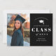 Um simples anúncio de graduação de fotos com grande ano de graduação, tipo clássico e nome do estudante.
