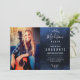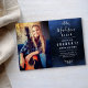 Este anúncio de graduação elegante e cativante apresenta um rico fundo de textura azul-escura e pequenos ramos desenhados. Uma foto do formando com um filtro quente adiciona um toque atraente. Este cartão é perfeito para anunciar a formatura do Segundo grau ou da Faculdade.