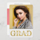Sua foto de formando vai brilhar neste anúncio moderno e simplista, mas tendencioso de graduação com sotaques falsos de folha de ouro e texto para rodar a sua.