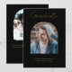 Um moderno cartão de anúncio de graduação preto e dourado com design de arco e sua escolha de 2 fotos. Personalize o texto e faça o seu próprio!
