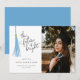 Cartão de anúncio de formatura moderna e caprichosa, com ilustração de uma tassel azul-claro, com um texto de tipografia escrito à mão que diz "o futuro é brilhante".