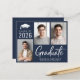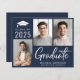 Anúncio de graduação moderno, azul, de marinho azul, favorável ao orçamento, com 3 fotos e "Formando" em um roteiro branco contemporâneo ousado. Adicione o nome do formando, ano de aula e escola ou universidade em tipografia branca simples.