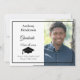 Fácil de personalizar este anúncio moderno de graduação de fotos de frente e de trás com seu próprio texto e foto. Apresenta uma design minimalista de um boné preto de formando e cinza prateada de fundo na parte inversa. Disponível em outras cores. Foto: Pixabay.com imagem de Michelle Raponi