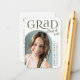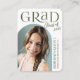 Um simples anúncio de graduação de tamanho mini apresenta tipografia moderna e foto em forma de arco em verde sage, elegante e divertido. Personalize com sua própria foto e informações da festa de graduação.