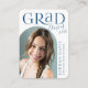 Um simples anúncio de graduação de tamanho mini apresenta tipografia moderna e foto em forma de arco em azul-teal, elegante e divertido. Personalize com sua própria foto e informações da festa de graduação.