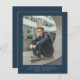 Anúncio de Graduação com Foto e Tipografia de Máquina de Escrever Simples em Azul