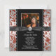 Convites de anúncio de graduação com foto prateada elegante, vermelha e preta. Personalize com suas informações e fotografia. Todos os desenhos de convites que você encontrará no Zazzle são gráficos impressos em papel liso sem partes ou peças elevadas ou adicionadas.