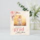 Impressão de mármore dourado como fundo. Decorado com grama das pampas e flores rosa claro. Personalize e adicione sua própria foto do graduado. Adicione o ano e o nome da escola. Com a palavra: Graduado escrita com letras grandes.