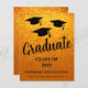 Envie a sua família e amigos este elegante cartão de anúncio de graduação de ouro brilhante. Este design apresenta bonés de formando no ar. Facilmente personalizável com seu próprio nome, escola e ano.