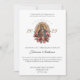 Personalize o nosso belo anúncio de formatura católica tradicional com uma bela de Nossa Senhora de Guadalupe, de cor rosa e rosas vermelhas. Todo texto e fontes podem ser modificados.